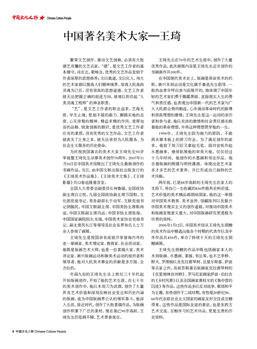 ——记百岁美术大家、美术理论家、美术教育家、新中国版画艺术奠基人和领军者之一王琦
