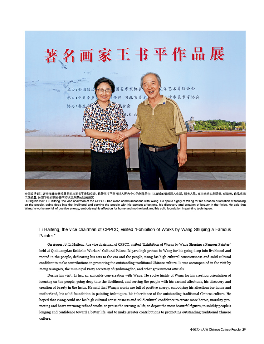 王书平,全国政协委员、中华海外联谊会理事、中国美协理事、天津市文联副主席、天津市美术家协会主席