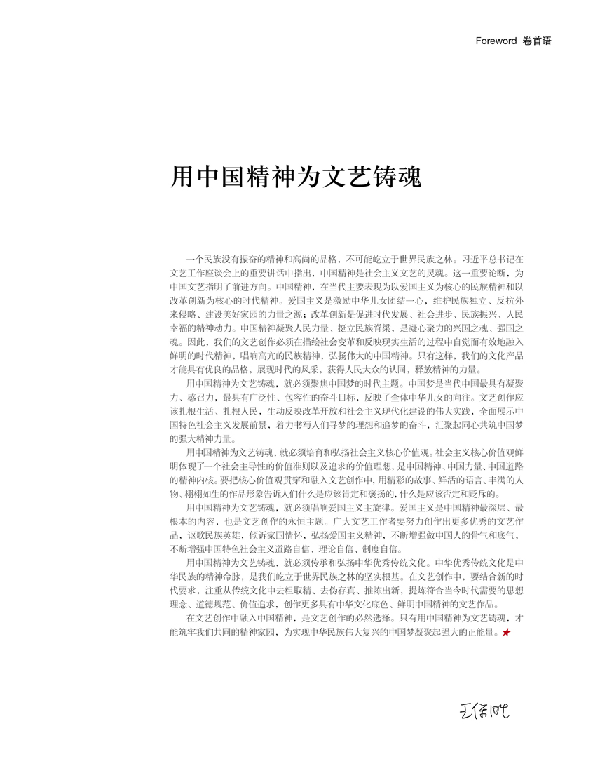 用中国精神为文艺铸魂