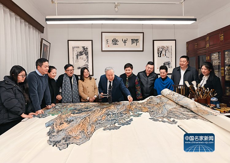 在李可染亲书的“师牛堂”牌匾下,李庚凝神挥毫、潜心擘画山水佳作,同时为青年艺术家亲授创作心得、示范笔墨技法