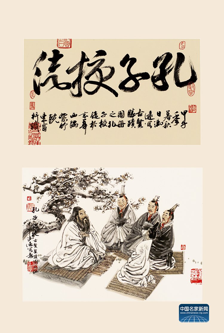 “Confucius Instructing His Disciples” (58×82cm) by Feng Yuan
