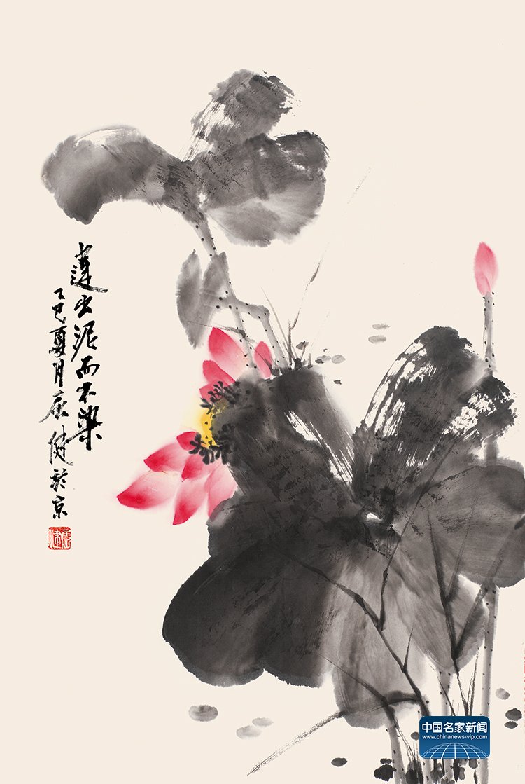 “The Lotus Emerges Unstained from the Mud” (69×47cm) by Qu Jian in 2025