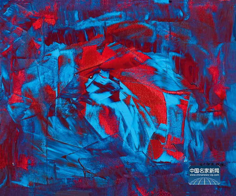 此次展览汇聚了李庚以“折迭的时间”为题创作的布面丙烯作品,这是他首次突破纸本水墨,进行新媒介、新方向的探索。该系列作品是他与科学家们共同交流和探索后创作出的全新作品,从材料、技法、理念等各方面都实现了全面突破。李庚在展览序言中写道:“时间与空间这个领域一直是科学家与艺术家在人类长河中不间断的从各自不同角度进行思考与表述。通过不断的攀登,不断的发现,使我们的生活更光明,更丰富。艺术在这方面不仅是思考而更主要用感性感悟,用色彩、形体进行表现,交叉、弯曲、折迭是我这组艺术作品的表现形式。”在这些作品中,李庚以布面丙烯为材料,用色彩与形体的交叉、弯曲、折迭,展现对时间与空间的感性感悟,作品充满了哲思与创新活力。