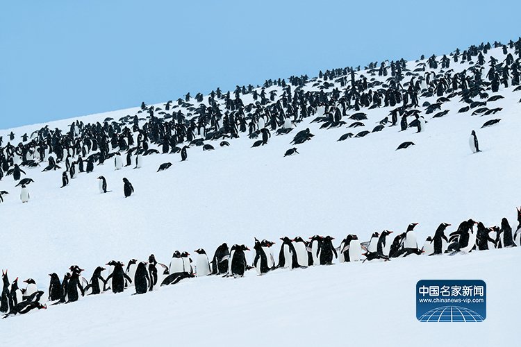 《众行致远(企鹅高速公路)》  439cm×135cm 王保胜摄于南极 2019年