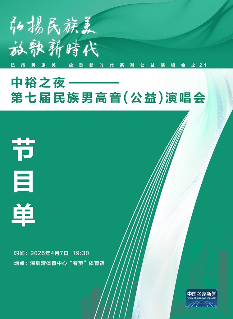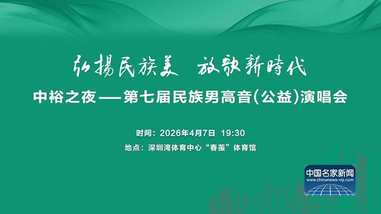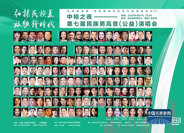 中国文化人物(记者 苏晴)弘扬民族美,放歌新时代。由中国-东盟艺术学院、中裕能源主办,深圳市文学艺术界联合会、深圳市音乐家协会、成都大学支持,中国-东盟艺术学院音乐与舞蹈学院承办主办的“中裕之夜——第七届民族男高音公益演唱会”将于4月7日19:30—23:00在深圳湾体育中心“春茧”体育馆举行。