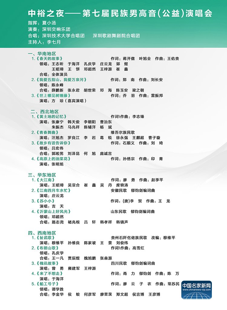 “中裕之夜——第七届民族男高音公益演唱会”节目单