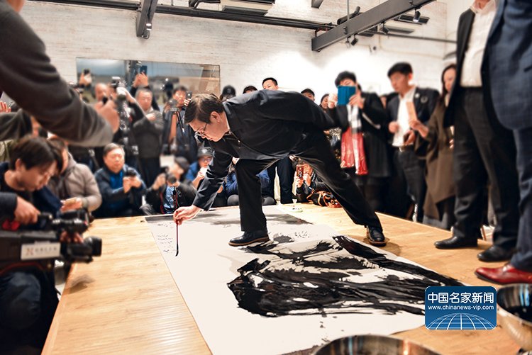 Li Geng wrote with his brush at the opening ceremony, expressing the landscape in his heart with the unique charm of the Eastern ink art.