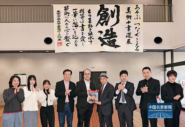 随后,容铁一行来到东京学艺大学书道课堂,受到东京学艺大学教授加藤泰弘及学生们的热烈欢迎。容铁观摩了学生们的书法创作,并向师生们赠送了中国文化人物杂志社为“第70届东洋书艺展——喜马拉雅——容铁艺术作品(日本)邀请展”编辑出版的中日文版《中国文化人物》杂志。