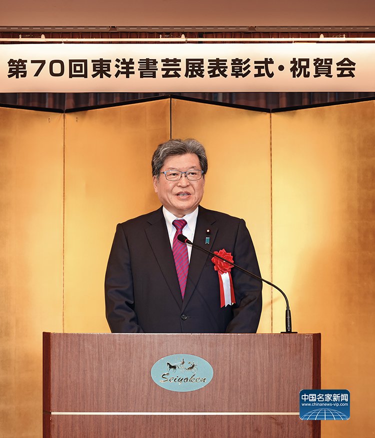 中国文化人物(主编 王保胜)2024年12月7日,由东洋书道艺术学会主办,中国文化人物杂志社共同主办,中国驻日本国大使馆、读卖新闻东京总社支持的“第70届东洋书艺展颁奖典礼庆祝会”在日本东京举行。中国驻日本国大使馆文化处公使衔参赞陈诤、二等秘书王贺,中国驻东京旅游办事处首席代表欧阳安,日本众议院议员、自民党原政务调查会长萩生田光一,日本八王子市议会议员、前八王子市议会议长吉本孝良,读卖新闻·日本电视台文化中心代表取缔役社长东泰子,读卖·日本电视文化中心董事、经理兼八王子中心主任横田博行,中国书法家协会理事、中国美术家协会理事、西泠印社理事、民盟中央美术院副院长容铁,中国文化人物杂志社社长王保胜,东洋书道艺术学会会长、理事长松本启祐,全日本华侨华人联合会副会长、世界艺术家联盟主席、全日本华侨华人春晩总导演程波,东洋书道艺术学会副会长宫部北空、河野重阳,以及来自中国、日本、韩国的参展艺术家代表和各界嘉宾出席。