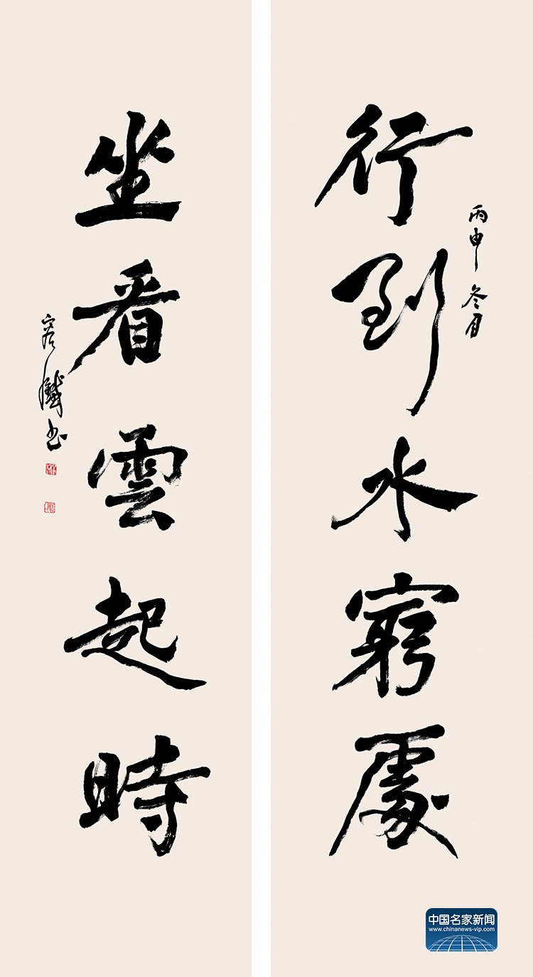 行到水穷处 坐看云起时 34cm×138cm×2 2016年 容铁书法作品