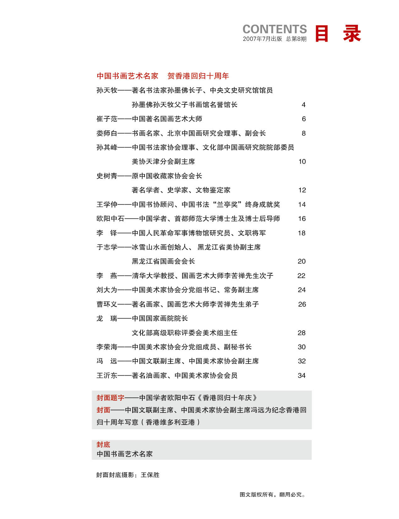 中国书画艺术名家贺香港回归十周年