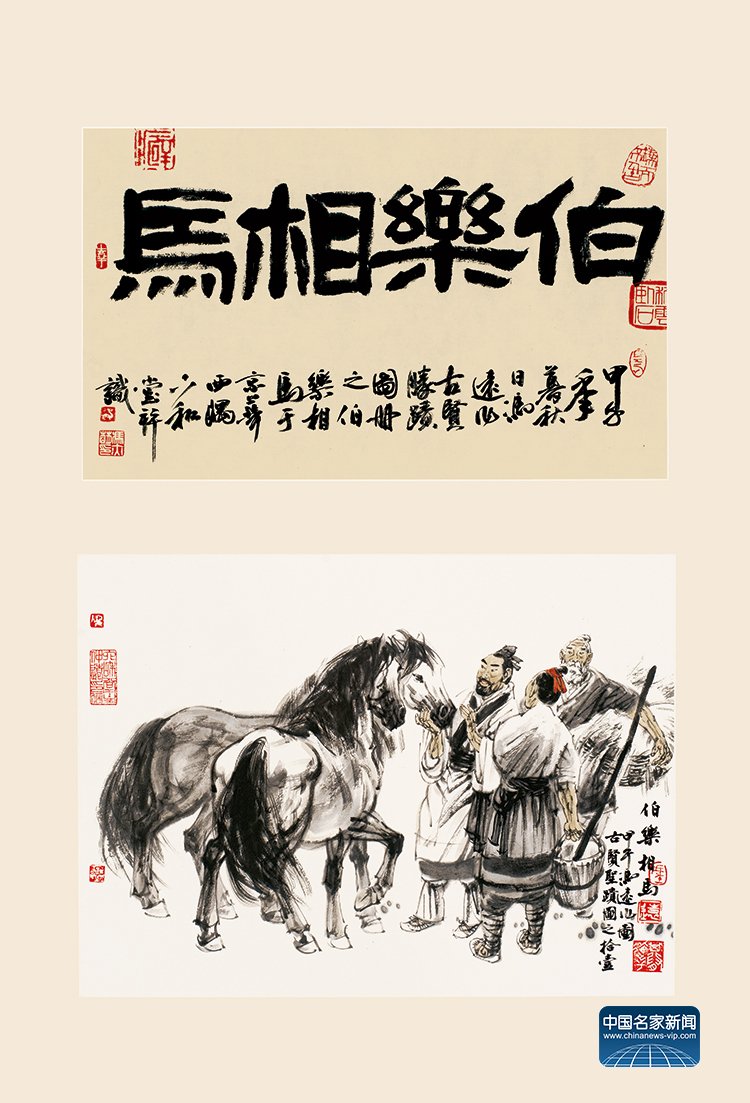 “Bo Le Appraising Horses” (58×82cm) by Feng Yuan