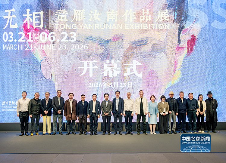 中国文化人物(记者 马将平)2026年3月23日,“无相——童雁汝南作品展”在深圳美术馆正式开幕。中共中央宣传部原秘书长官景辉,广东省文联专职副主席生继锋,深圳市文联主席刘文斌,深圳市委宣传部副部长、深圳市新闻出版局局长苏荣才,深圳市文化广电旅游体育局副局长施文丽,深圳市文联名誉主席董小明,广东省云浮市政府副秘书长简学豪,江西省九江市政协副主席王丰鹏等各级领导,中国美术家协会协副主席庞茂琨,中国美术家协会副主席李象群,中央美术学院院长林茂,中国艺术研究院研究员、中国油画学会原副主席兼秘书长张祖英,广州美术学院院长范勃,中国艺术研究院原副院长谭平,清华大学美术学院院长吴琼,复旦大学哲学学院党委书记袁新,景德镇陶瓷大学副校长张婧婧等国内艺术界领军人物,库里蒂巴国际双年展组委会主席路易斯·倍雷拉(Luiz Ernesto Meyer Pereira) ,库里蒂巴双年展艺术总监Adriana Almada,慕尼黑德国博物馆策展人DR NEUMANN,苏格兰国立美术馆馆长西蒙·格罗姆(Simon Groom),意大利Mazzoleni Gallery创始人Luigi Mazzoleni,日本艺术家盐田千春(Chiharu Shiota)等国外艺术界嘉宾600余人出席。开幕式由深圳美术馆馆长朱建军主持。